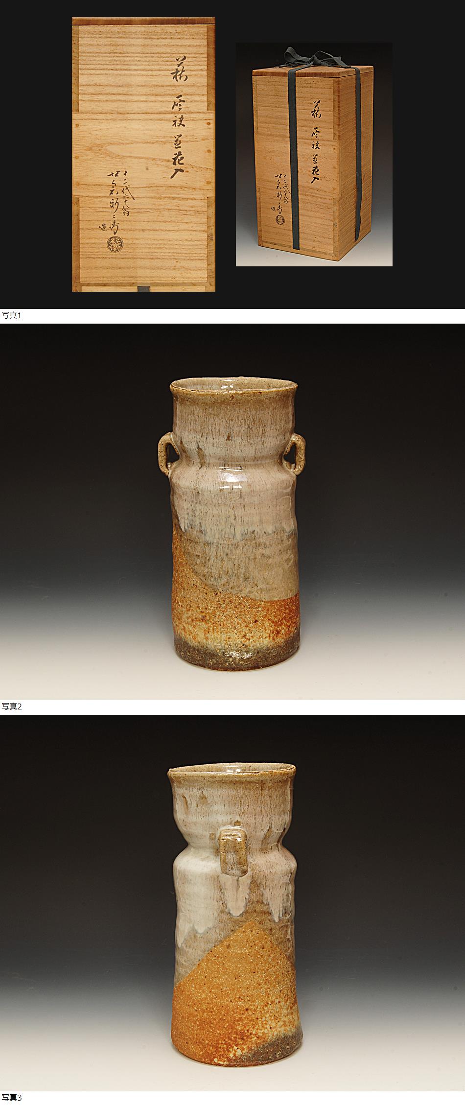 星庵厳選名品企画 十二代坂倉新兵衛 萩灰被双耳花生 共箱