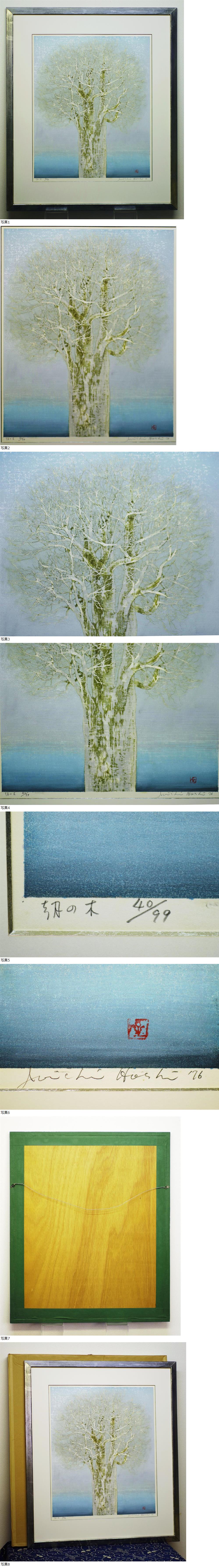 ☆★入札の取消し・落札後のキャンセルは 一切出来ません。 良くご確認の上入札して下さい。★☆ ☆★落札後2日以内のご連絡と、5日以内の ご決済をお願い致します。★☆ ☆★商品を受け取りましたら必ず《受取連絡》の クリックをお願い致します。★☆ クリックをして頂けない場合は、 以後の入札をお断りいたします。 ☆★《悪い》の評価が二桁ある方につきましては 予告なく入札制限と入札の取り消しをさせて 頂く場合がありますのでご容赦ください。 ☆★商品を確実にお届けするため、取引ナビにて 電話番号の記載をお願いいたします。★☆ ☆★再配達を避けるため、配達日・時間帯指定の ご協力をお願い致します。★☆ ☆★領収書の発行可能ですが、必ず取引ナビの 最初にご連絡ください。 インボイスには対応しておりません。 商品発送後の発行に関しましては、 切手代110円を申し受けます。 いつもアクセス頂きまして誠にありがとうございます。 すべて最低落札価格無し! 100円スタートと致しますので奮って入札して下さい。 この木版画は星襄一の作品で、 タイトルは『朝の木』です。 青と銀が美しい《樹》シリーズからの大判逸品です! 是非コレクションの一枚に加えて下さい! ☆★☆当店の出品ポリシーについて☆★☆ 当店出品の作品につきましては、美術年鑑での 評価額などにとらわれず、極力描きこみの良い物・ 埋もれさせたく無い現存・物故作家を中心に 出品しております。 (勿論、人気作家の出品もあります) また、作品は直ぐに飾って頂けるようガラスを外して 裏表を綺麗に拭き上げる(構造的に外せない物は表面のみ) のは勿論の事、外枠のクリーンナップや金具・ 吊りヒモの補修・交換などを施した後、 しっかりと梱包の上発送しております。 最近は赤字での落札も沢山ありますが、 これからも落札者の立場に立った出品を心がけてまいり ますので、ご愛顧のほどよろしくお願い申し上げます。 他の入札者のご迷惑となりますので、一円単位でのご入札、 入札後のキャンセルはご遠慮願います。 ☆★☆出品作品は全て真筆・真作保証いたします。☆★☆ 万が一贋作の場合、落札代金+送料をご返金 させて頂きます。 落札後、異議申し立てされる場合、物故作家の場合は、 公的または所定鑑定機関発行の鑑定書・証明書、 あるいは作家のご遺族による所見を記した 署名・捺印・日付のある書面をご提出いただきます。 現存作家の場合、作家自身の署名・捺印・日付のある 書面を御用意の上申し立て下さい。 異議申し立ては、落札後一か月以内とさせて頂きます。 ★☆なお、鑑定にかかる交通費や鑑定料などの 費用につきましては、お客様のご負担となります。☆★ 作品欄/額縁欄の☆印について 1/2は☆半分です ☆☆☆☆☆ 新作及び描きおろし/新品額装 ☆☆☆☆ 新品同様品/微かな擦れがある新品同様額 ☆☆☆ 汚れ・傷みの無い美品/若干の擦れのある額縁 |