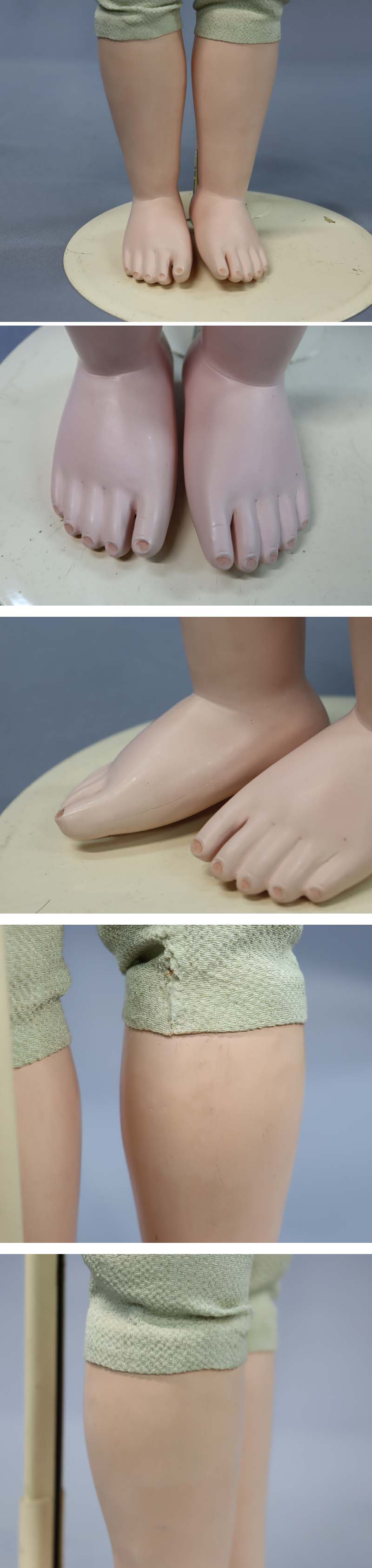 右足内側の型の合せ目に継目の隙間がわずかに見られます (画像下から3枚目参照)。