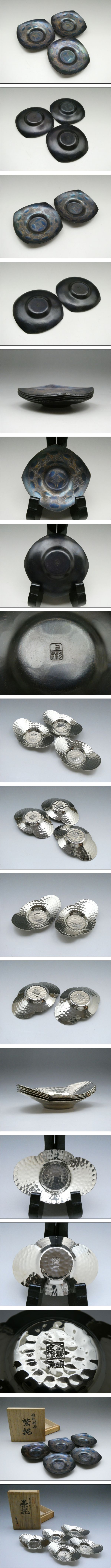 | ★商品★ ・撫角鎚目茶托/銅製:五客揃 (上彬) ・木瓜形鎚目茶托/洋銀製:五客揃 (大黒文作) ★寸法★ <撫角茶托> ・直径:(約)8cm ・高さ:(約)1.5cm <木瓜形茶托> ・幅:(約)9cm ・奥行き:(約)6cm ・高さ:(約)2cm ★付属品★ ・共箱 ・栞 (上彬) ★状態★ ・2点とも比較的、綺麗な状態となります。 ※備考※ 商品状態に関しては、あくまでも当方の見立てとなります。 程度には個人差がございますので、商品画像を良くご覧になられた上でのご入札お待ちしております。 画像の台座は付属しません。 |