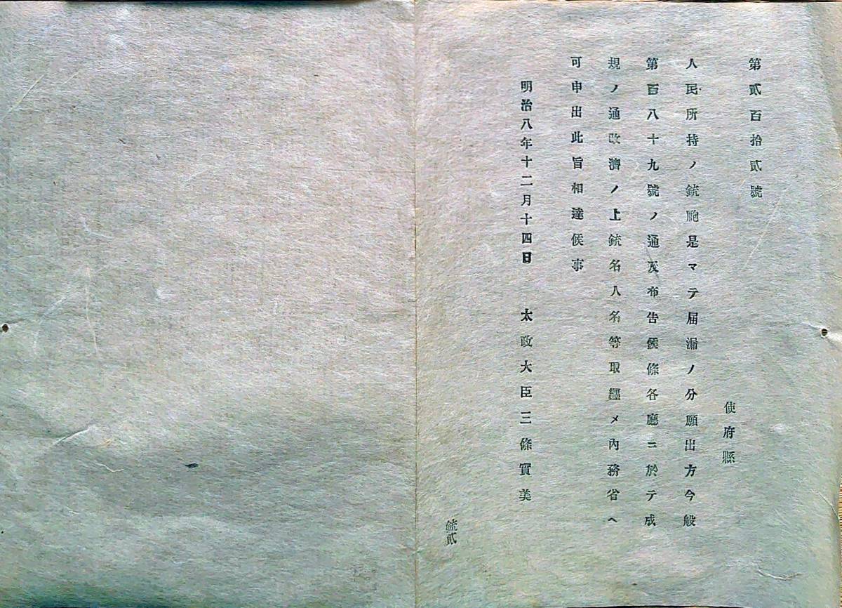 f20021305〇明治布告 人民所持の銃砲 明治8年 長野県〇和本古書古文書| 出价者 | 信用 | 价格 | 时间 |