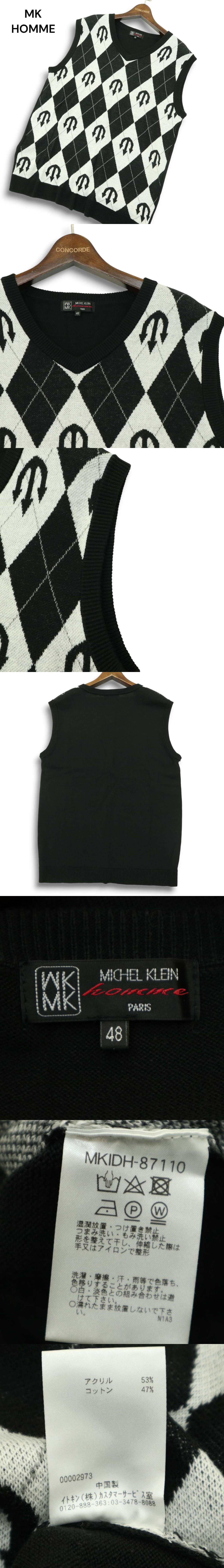| MK HOMME ミッシェルクラン オム 秋冬 【PIKE】Seiries アーガイル トライデント Vネック ニット ベスト Sz.48 メンズ 黒 A4T09317_8#K | |||