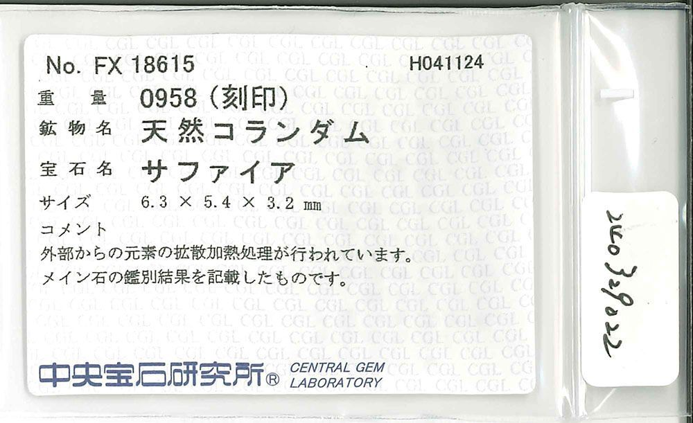 | 石目 | 0.958 刻印 (サファイア 1石 0.958ct×ダイヤモンド) |