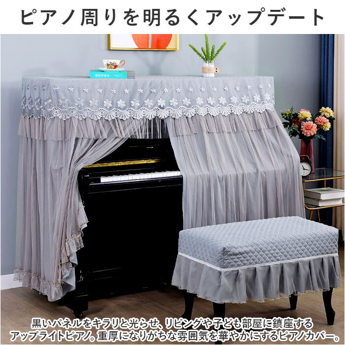 | 商品説明 | ・・お部屋の片隅に佇むピアノを、エレガントな装いにパッと着せ替え!ふわっと被せるだけで装着カンタン「ピアノカバー&チェアカバー セット」が新登場。 ・【ピアノ周りを明るくアップデート】 ・艶やかな黒いパネルをキラリと光らせ、リビングや子ども部屋に鎮座するアップライトピアノ。重厚になりがちな雰囲気を華やかにアップデートするピアノカバー。 ・【ホコリやキズからピアノを保護】 ・ホコリやキズが目立ちやすい鏡面のようなピアノのパネル表面に、柔らかな生地感のカバーをすっぽり足元まで被せることで、降り積もる小さなホコリや傷付きからピアノを優しく保護。 ・【カバーを外さず、そのまま弾ける】 ・カバー正面は、薄手のドレープ生地に透け感のあるチュール生地を合わせた2重構造。中央のスリット部分を左右に開けば、カバーを外さずにピアノ演奏が可能。 ・【天面はふんわりキルティング仕上げ】 ・カバー上部は、ふんわり中綿を詰めたキルティング仕上げになっているので、ピアノの天面にオブジェや置き時計、コーヒーカップなどを置いても大丈夫。 ・【同じデザインのチェアカバー付き】 ・ベンチタイプのピアノチェアにぴったり装着、ピアノカバーとトータルコーディネートができる、同じデザインのチェアカバーが付属。 ・【選べる2タイプ】 ・お手持ちのピアノチェアのサイズに合わせて、シングルチェアカバー(Aタイプ:横幅約58cm)と、ダブルチェアカバー(Bタイプ:横幅約:78cm)の2種類からお好みのタイプがチョイス可能。 ・【ご家庭でカンタンお洗濯】 ・ピアノカバーもチェアカバーも、手軽にお手入れができる簡単ウォッシャブル仕様。いつでも清潔に使えて、小さなお子様がいるご家庭でも安心。(※洗濯ネットをご使用ください。) ・【お部屋に馴染むシックなカラー】 ・お部屋の雰囲気にすっきり調和する、柔らかく落ち着いた雰囲気のカラーバリエーション。カバー正面のお花の刺繍と優雅なレースの縁取りが可憐な雰囲気。 |