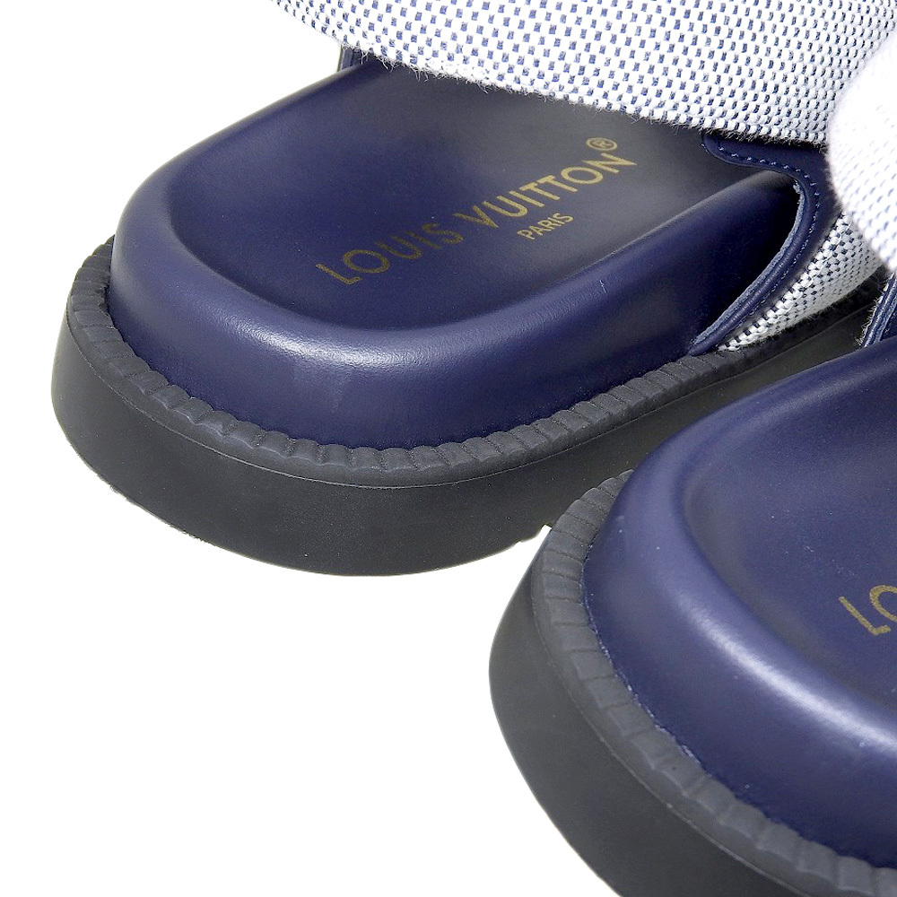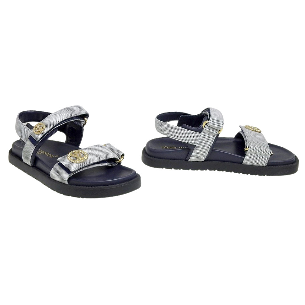 | 箱付超美品 ルイヴィトン 2024年商品 LVサンセットライン レザー サンダル シューズ 37 23.5-24cm 紺 レディース ほぼ未使用 定価206800円 |