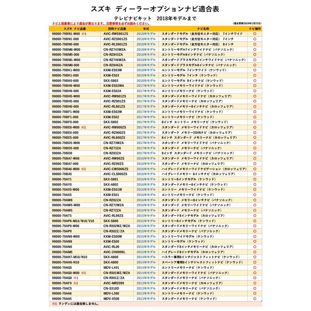 | ▼こんなお悩みございませんか? ・車が走り出したらテレビ&DVDが見れない! ・長い渋滞で同乗者がイライラ ・長距離ドライブで子供がぐずる ・ナビ操作もしたい! → 当店のテレビキットを取り付ければすべて解決! 走行中でもテレビ視聴OK!ナビ操作OK! ▼取り付けが難しそう… ・当店のテレビキットはカチッとはめるだけのカプラーオンタイプ ・配線加工やカプラー分解、組み換えなど一切必要なし! ・必要がなくなればすぐに取り外せます ・車検も問題ございません → ”カチッとはめるだけ”で快適・便利なドライブに! ※本製品は同乗者の方の使用を目的としている商品です。運転者が画面を凝視することは安全運転義務違反になりますので、絶対におやめください。 ※取り付けの際は万が一のため、バッテリーの接続を外すなどのうえ、作業してください。 ■テレビキットについて テレビナビキットを取り付けても法律はもちろん、車検にも合格します。 ナビゲーションの通常の機能(バックカメラやETCなど)を損なうことはございません。 また、ナビ操作も可能になりますので、走行中でも目的地設定、ルート変更もできます。 ※ 地図、自車位置ずれなどの起こりません。 助手席や後部座席の方が走行中にテレビをご覧になるのはもちろん問題ございません。 当製品は走行中に助手席、後部座席の方の利用を目的として販売しているカプラーキットです。 運転者が走行中にモニターを凝視することは安全運転義務違反になり、大変危険ですのでおやめください。 また、走行中のナビ操作も助手席の方が行ってください。 お取り付けに関するサポートは行っておりませんのでご了承ください。 また、取り付けたことにより発生した事故・故障・損害は一切保証できませんので、 お取り付けは整備工場などで行い、あくまで自己責任のうちで取り付けを行ってください。 (作業ミスなどの責任は負いかねます) ![]() ![]() ![]() ![]() |