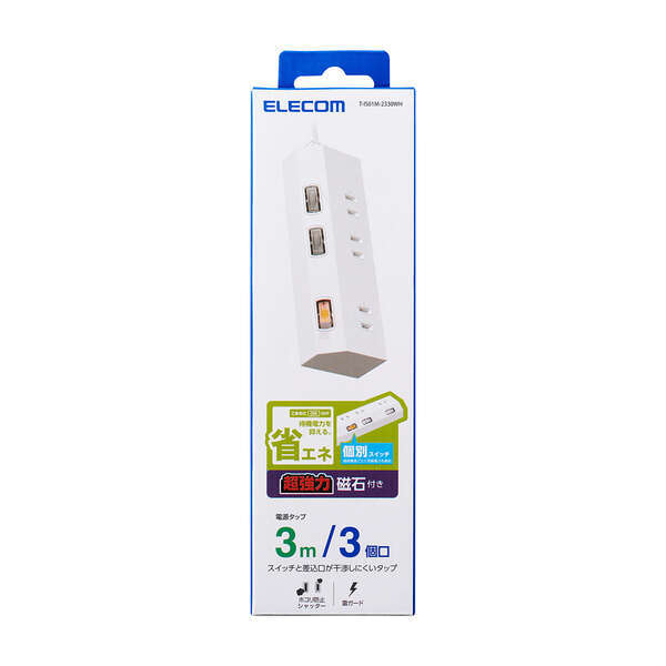 | 製品 | 個別スイッチタップ 3個口タイプ 磁石・雷サージ・ホコリシャッター付 |