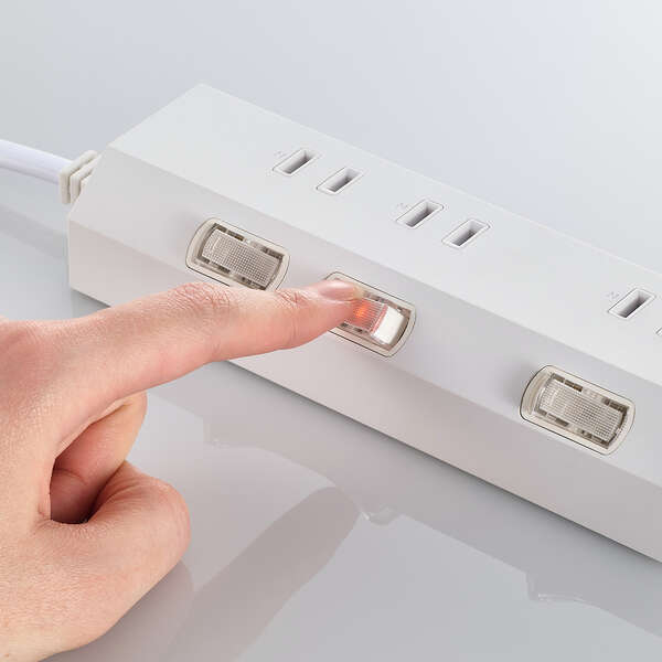 | ●個別スイッチで差込口ごとに、電源のON/OFFの切り替えができます。 接続機器の電源がOFFの状態でも電力を消費する待機電力を削減し、 電気代の節約に役立ちます | |