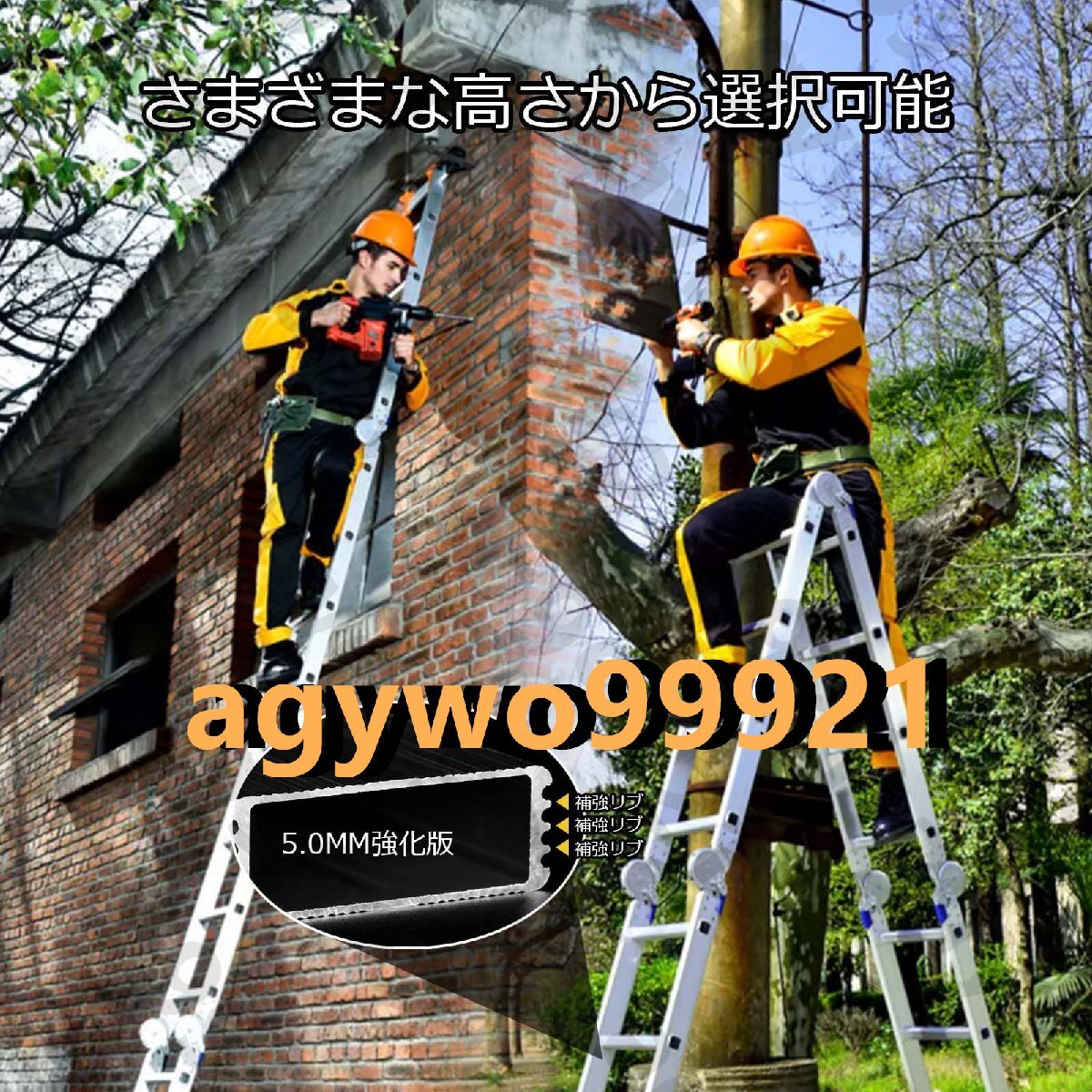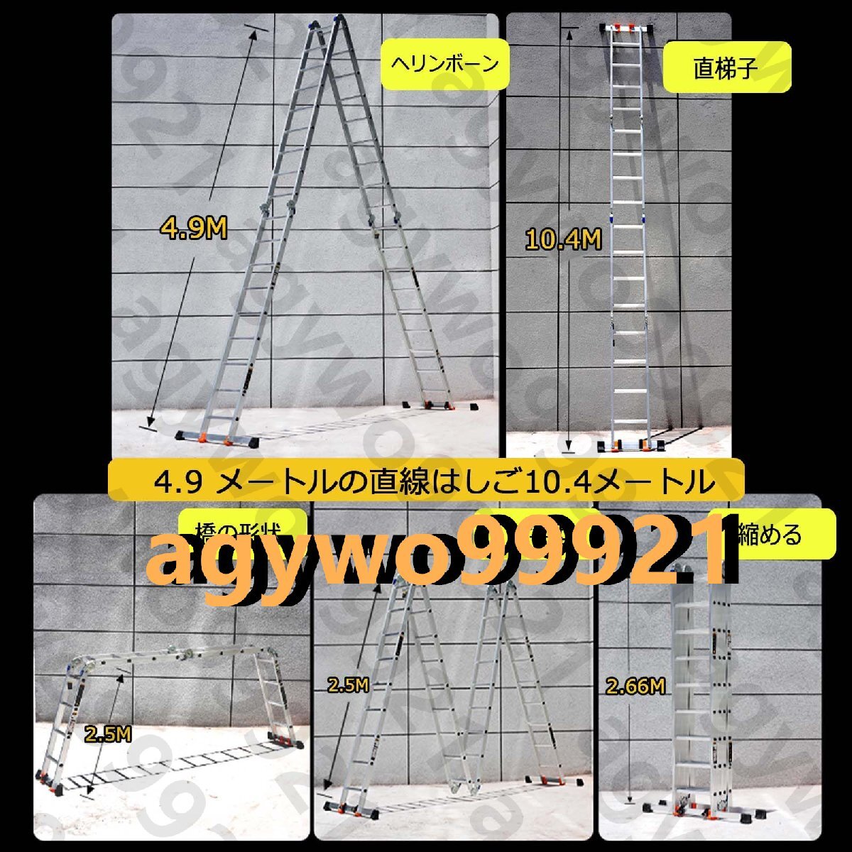 【7-in-1多機能】多機能折りたたみはしごは、さまざまなニーズに合わせて調整できます。 A字型はしご、直線はしご、踊り場、M字型はしご、吊りはしご、足場として使用できます。 はしごは最大 10.4 メートルまで伸びるので、屋根に簡単にアクセスできます。
