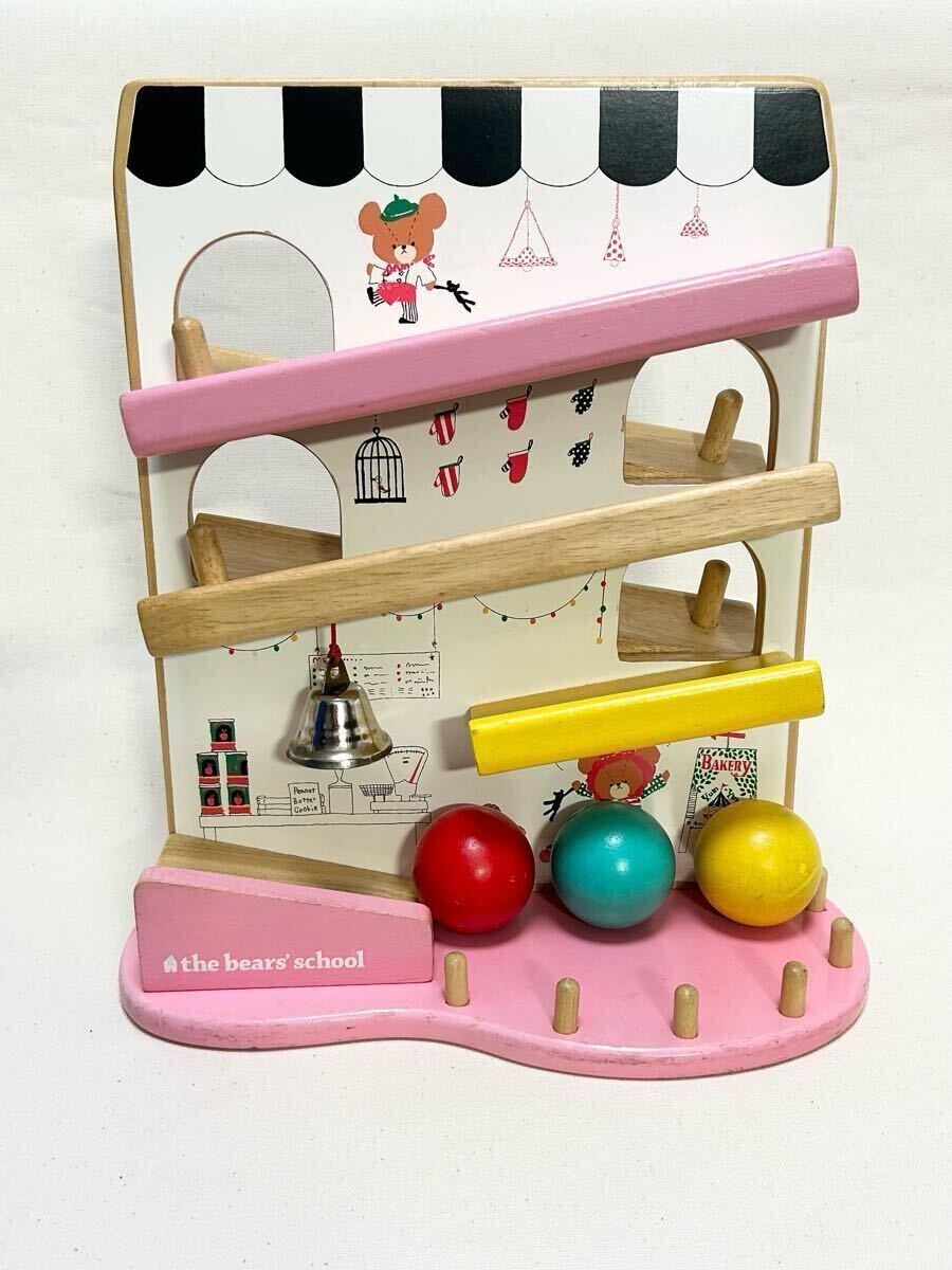 ニチガン Nichigan くまのがっこう コロコロスロープ,くまのジャキーをモチーフにした カラフルなスロープトイです,上からボールを転がし最後までボールが転がると鈴を鳴らします,繰り返し遊べる木製玩具です,個人的主観ですが,黄ばみ/傷等多少有ります,清掃済みです,ボール3個付き,現在メーカー(型番KG19) 廃番品だと思います,状態は画像で確認,ご判断お願い致します,商品はメイン画像内のみです。