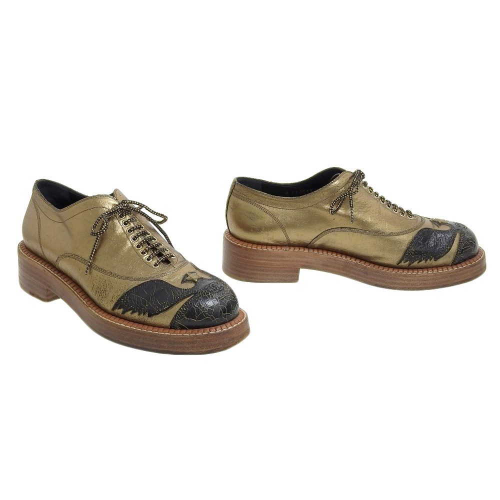 | 美品 シャネル 2013年パリダラス メティエダールコレクション スターココマーク オックスフォード レザー ローファー 38 1/2 24‐24.5cm |