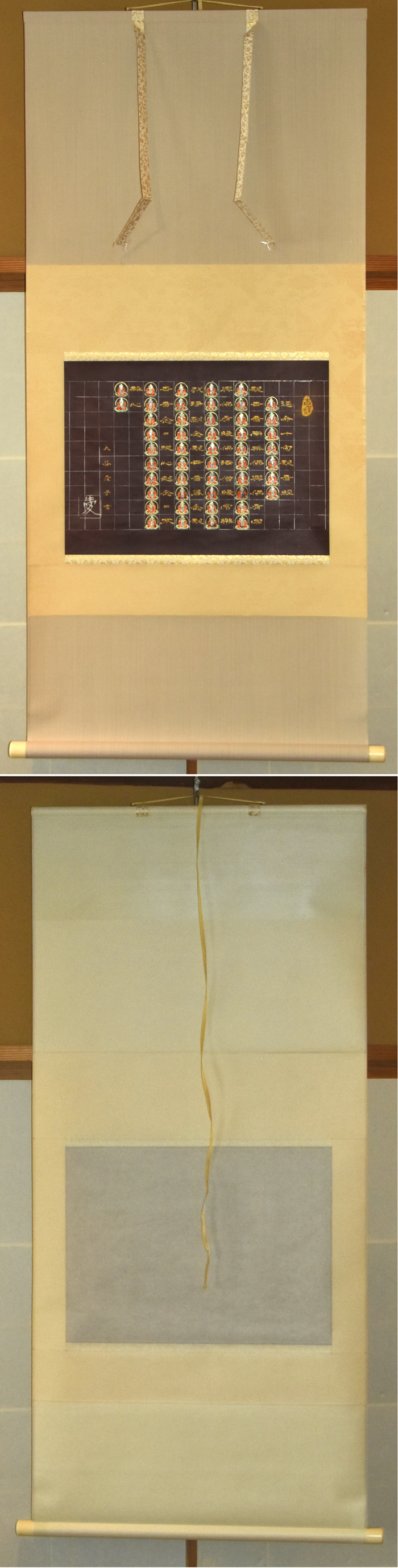 軸 横幅:58㎝ 長さ:125.5㎝ 本紙 横幅:45㎝ 長さ:32㎝ |