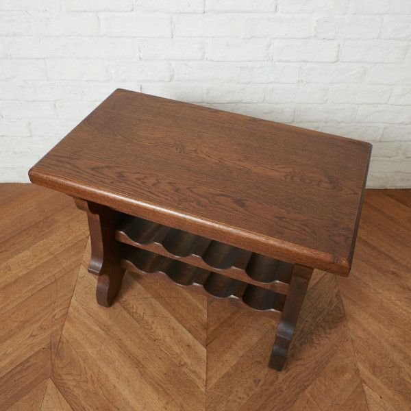 厚みのあるオーク無垢材を用いた、ネザーランズフォークロア、ボトルラック付き サイドテーブルです。