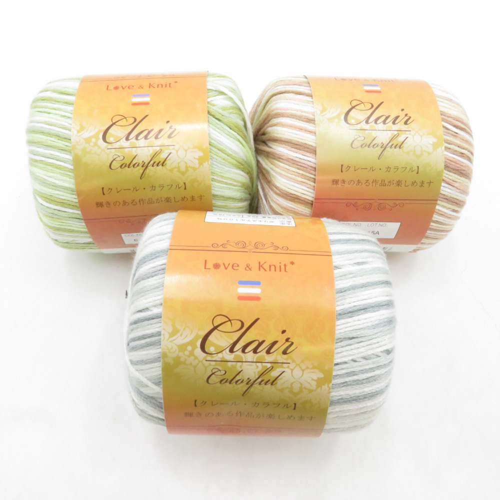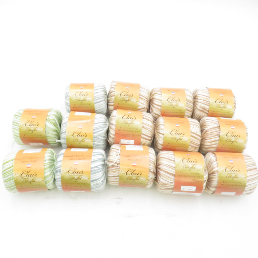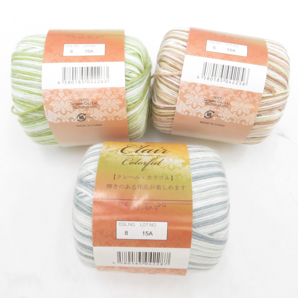 | 毛糸 クレール・カラフル 14玉セット 青緑色 緑色 桃茶色 8番色 5番色 6番色 玉25g 約78m ポリエステル100% 春夏毛糸 |
