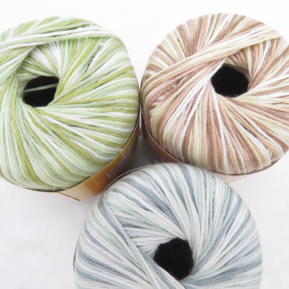 | 商品説明 | 春・夏用ベストやセーターを編むにおすすめの春夏糸です。 COL:8番色×3、5番色×9、6番色×2 標準ゲージ 棒針 24~25目・31~32段 かぎ針 25目・12段 おすすめ使用針 棒針 5~6号 かぎ針 5/0号 1玉25g 約78m | ||
