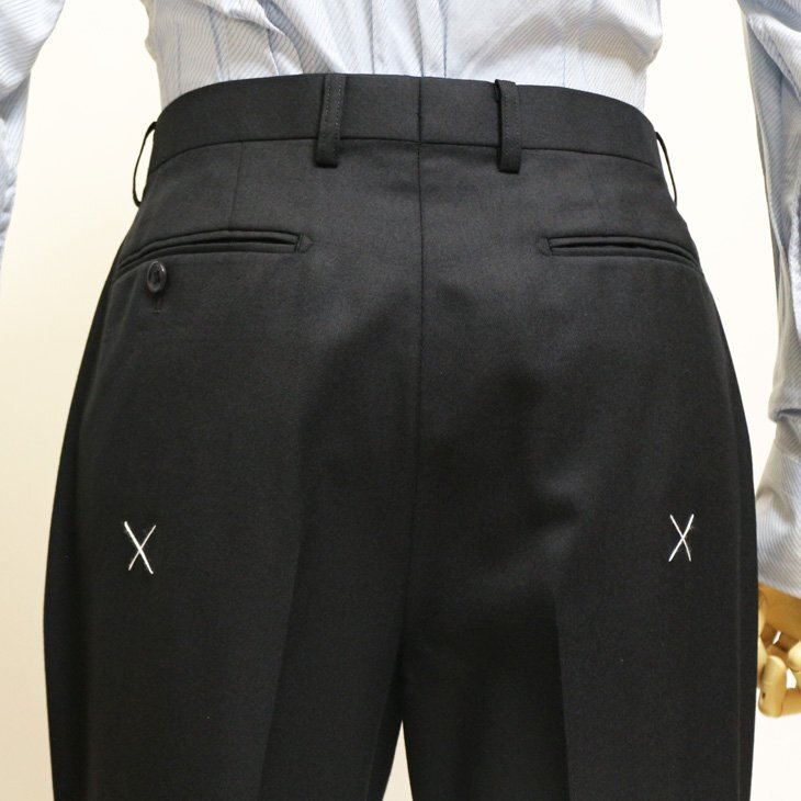 (上着)AMFステッチ:ラペル・胸ポケット・フロントポケットのフラップ 袖口重ね4つボタンX止め、袖口裏額縁仕上げ、フロントポケット両玉縁で サイドは閂+Dカン補強が入ります。 黒水牛ボタン:袖、フロント上着の内ポケット、ズボンフロント、後ろポケット 上着の内側は、本台場、ピンポンステッチ、汗止め、総パイピング補強 上着の見えない内側の仕様は、各部を接着芯にて補強し毛芯を据えた ラペル毛芯仕様、肩パットは近年では薄手の3mm厚です。 (ズボン)ワンタック、斜めポケット、チョーシック、フロント持ち出し、膝裏 生産国:日本製(国内オーダー工場にて一貫生産) |