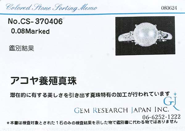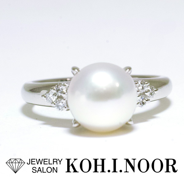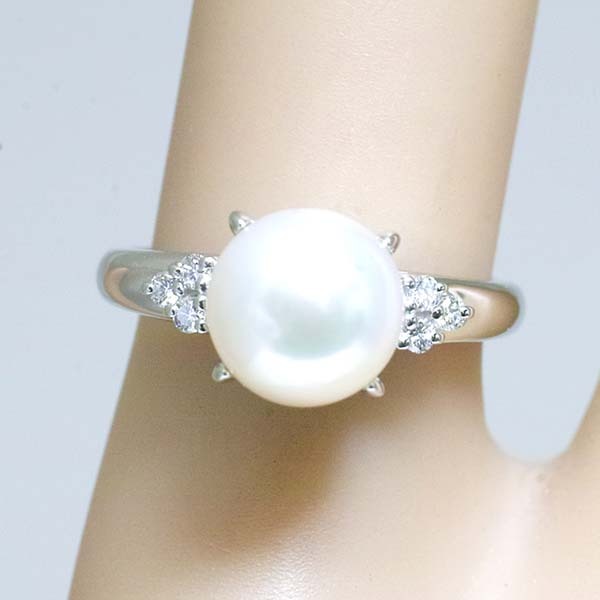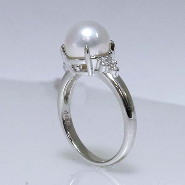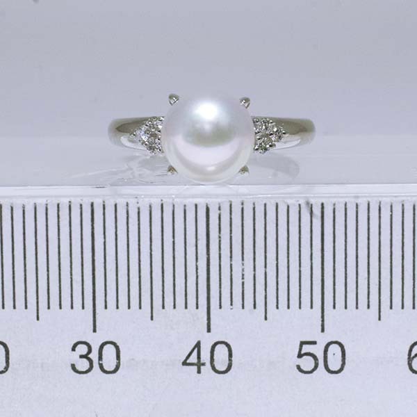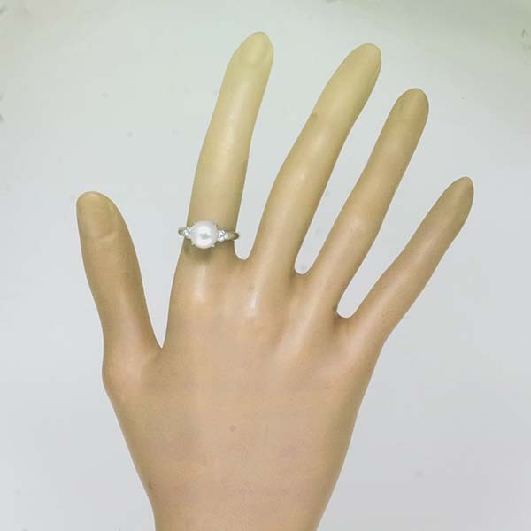 アコヤパールの両脇に3石ずつのダイヤをセットしたタサキのプラチナ製パールリング。| 商品詳細 | |||||||||||||||||||||||||||||||||||||