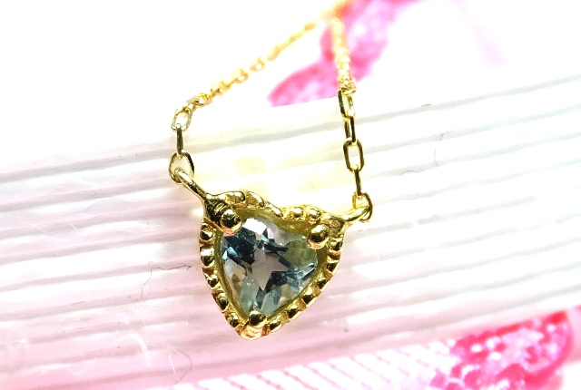 | K18 金 YG イエローゴールド ネックレス 人気 ハートモチーフ、ハートシェイプカットの アクアマリン デイリー着け、大人 可愛い ミル打ち 加工 クラシカルフレーム。 【アクアマリン】 ・ピュアな ブルーカラーが、精神を静めてくれる 癒しの宝石。 ・気持ちを落ち着かせ、あらゆる場面で、集中させてくれる 宝石。 ・3月 の誕生石 ・ふたご座(5/22~6/21)の星座石 ・やぎ座(12/23~1/20)の星座石 ・結婚4周年 の記念日宝石 ■ご自分や大切な方の誕生石や星座石を着けていると 幸運パワーが得られる、お守り・守護宝石と言われています。 ◆詳細◆ ・使用宝石 / アクアマリン(ハートシェイプ カット) 0.09 ct(刻印有り) ・宝石のサイズ / 約 縦 4.0 mm X 横 3.5 mm ・ペンダント トップ部分 サイズ / 約 縦 4.5 mm X 横 4.5 mm X 厚み 1.8 mm ・ネックレス ( シルク チェーン ) / 全長 約 40 cm 幅 太さ 約 0.4 mm ・3cm 短くして使用出来る丸金具(アジャスターカン)付き ・金属素材 / K18金 YG イエローゴールド(K18の刻印有り) ・総重量 / 約 0.8 g ・付属品 / 専用ケース付き ・保証書付き | |