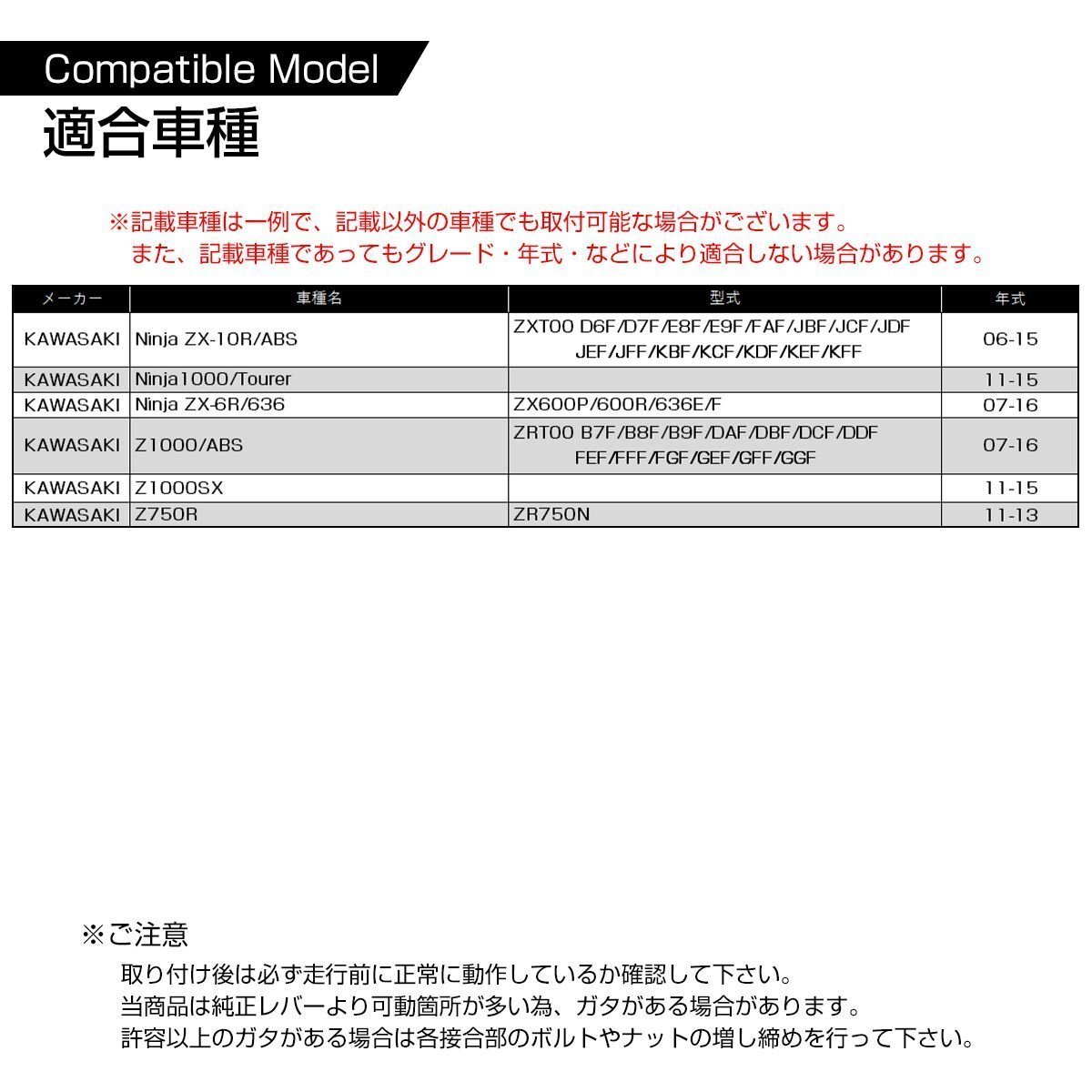 ■商品コード SZ236-G ■商品タイトル Z1000 ブレーキ&クラッチ レバー セット 左右セット ■特徴 万が一の転倒時にレバーへのダメージを軽減する可倒式レバー採用。 手のサイズのに合わせてレバーのアングルを6段階で調整可能。 レバー長の調整幅は約20mmの間で無段階調整が可能。 ■ 商品内容 ・カラー:ゴールド ・素材:アルミニウム削り出し ・入数:数量1でブレーキレバー1本、クラッチレバー1本 ・適合車種:適合車種:Z1000 / Ninja1000 など ※詳細は画像7枚目参照 ※記載車種は一例で、記載以外の車種や年式に取付可能な場合がございます。 また記載車種であってもグレード・年式・などにより適合しない場合があります。 ■その他カラーはコチラ ※注意事項 取り付け後は必ず走行前に正常に動作しているか確認して下さい。 当商品は純正レバーより可動箇所が多い為、ガタがある場合があります。 許容以上のガタがある場合は各接合部のボルトやナットの増し締めを行って下さい。 |