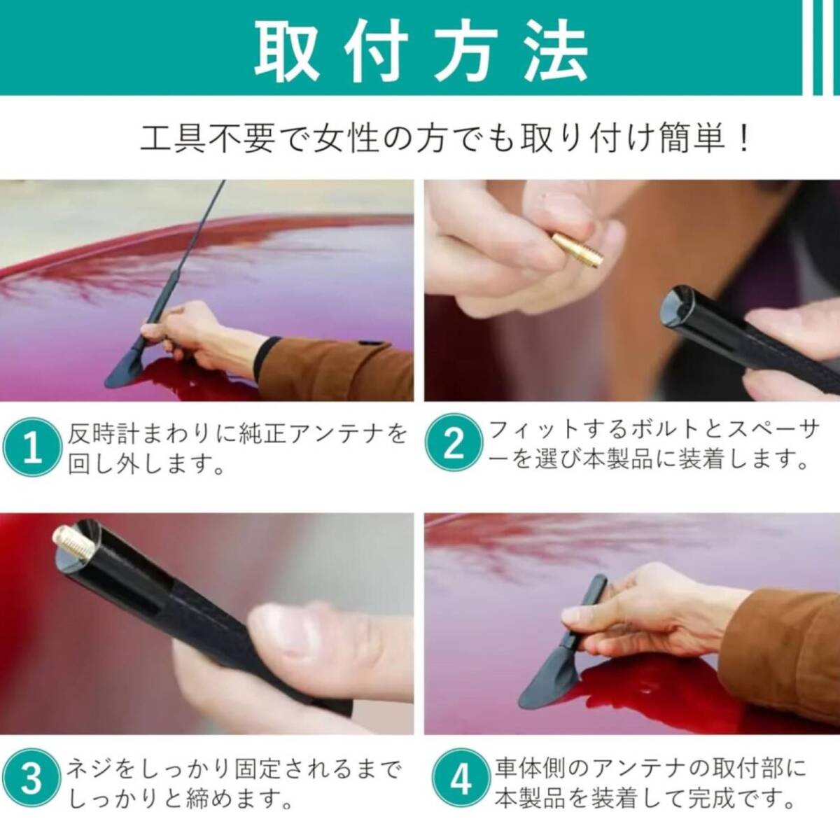 | 注意事項 | 1.受信感度はなるべく純正同等となるように設計されておりますが、 長さが短くなる為 地域や場所によっては受信しにくくなる 場合がございます 2.あくまでファッションをメインとした商品としてご理解の上ご使用ください いつでも元に戻せるよう純正アンテナは必ずお手元に保管ください 3.車種別で販売しておりますが、汎用品としてもサイズがあえば 他車種にも装着可能です 4.グレード 特別仕様車 オプション等で適合しない 車種もございます。 事前に現車確認をお願い致します (ドルフィンアンテナや純正伸縮アンテナは不可) 5.ご購入前に必ず、お車のアンテナやその土台、ネジの直径などを ご確認いただき掲載画像の商品と見比べたうえで、 ご購入をお願い致します 6.購入後の装着不可等のクレームに関しては責任を負いかねます ので予めご了承ください 7.お客さま都合による適合の相違、品番の相違といった理由による 返品交換は行っておりません 8.取り扱い商品は新品です 初期不良以外の返品および交換はご容赦ください 万が一商品違い・運送中破損等が起きた場合には、商品到着後 1週間以内に ご連絡ください 9.当商品は海外製の市販品となりますので、純正クオリティ同等や 日本製同等ではございません。予めご了承ください |