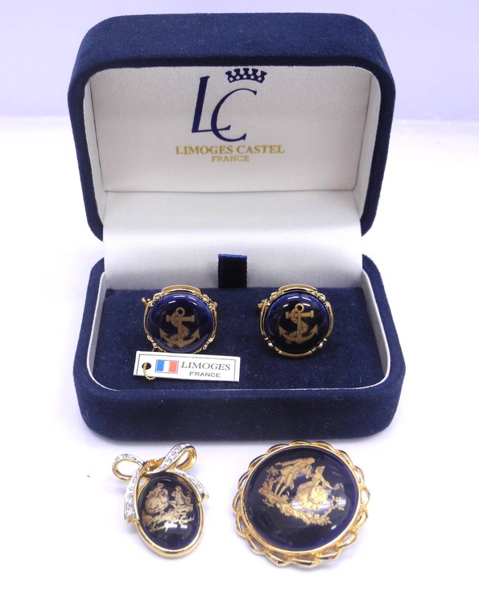 | ■リモージュ キャッスル ブローチ ペンダントヘッド カフス3点 おまとめ LIMOGES CASTEL■ | ||