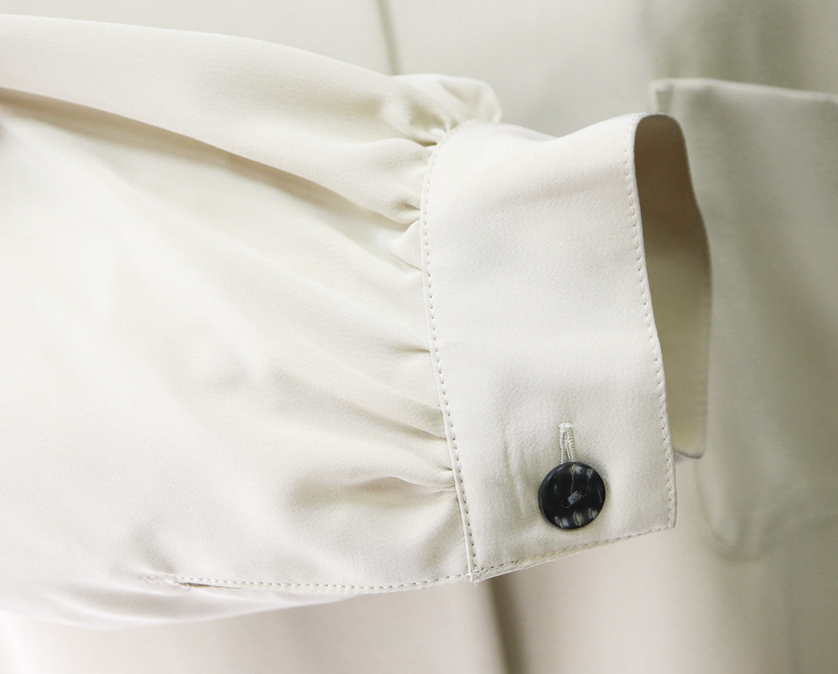 レナウン アンジュールの長袖ブラウス。 ゆったりとしたオーバーサイズ。 楽におめしいただけます。 ステンカラー。 胸ポケットあり。 袖口はふんわり。 背中に型押しでエジプトの姫君の絵。 裾は、まっすぐ。 キメの細かいポリエステル。 滑らかな感触です。 色はベージュ #F5E7D0 こちらのカラー番号に近いお色です。 *サイズ:バスト85(できあがり110) 着丈70 肩幅48 袖丈51 *素材:ポリエステル *ストレッチ‥あり5-4-3-2-●なし *生地の厚さ‥厚い5-4-●-2-1薄い *季節:冬5-4-●-2-1夏 *メーカー希望小売価格(税抜き)‥@16900 ◆備考: デッドストックです。 落札の際は、その旨、ご了承下さい。 | |||