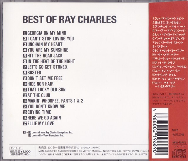 | RAY CHARLES / レイ・チャールズ・ベスト~エリー・マイ・ラブ /中古CD!!81930/C | |