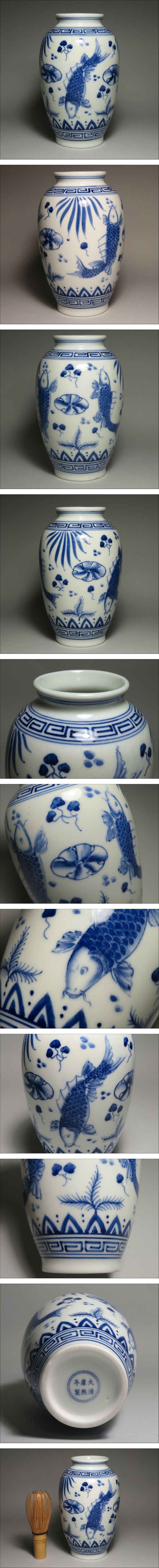 【東】清時代「大清康熙年製」青花魚藻文瓶 中国美術/古美術・骨董品 | ||