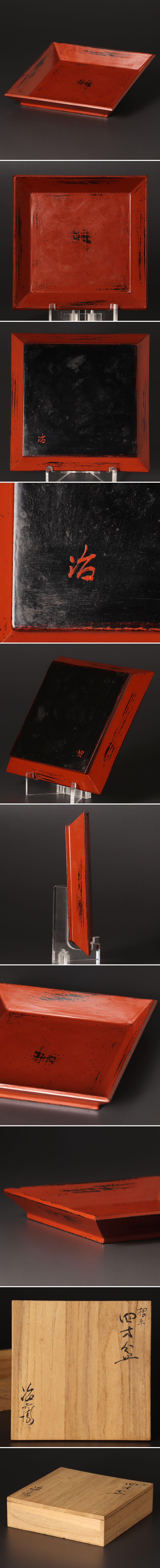 【古美味】二代村瀬治兵衛 根来四方盆 茶道具 保証品 |
