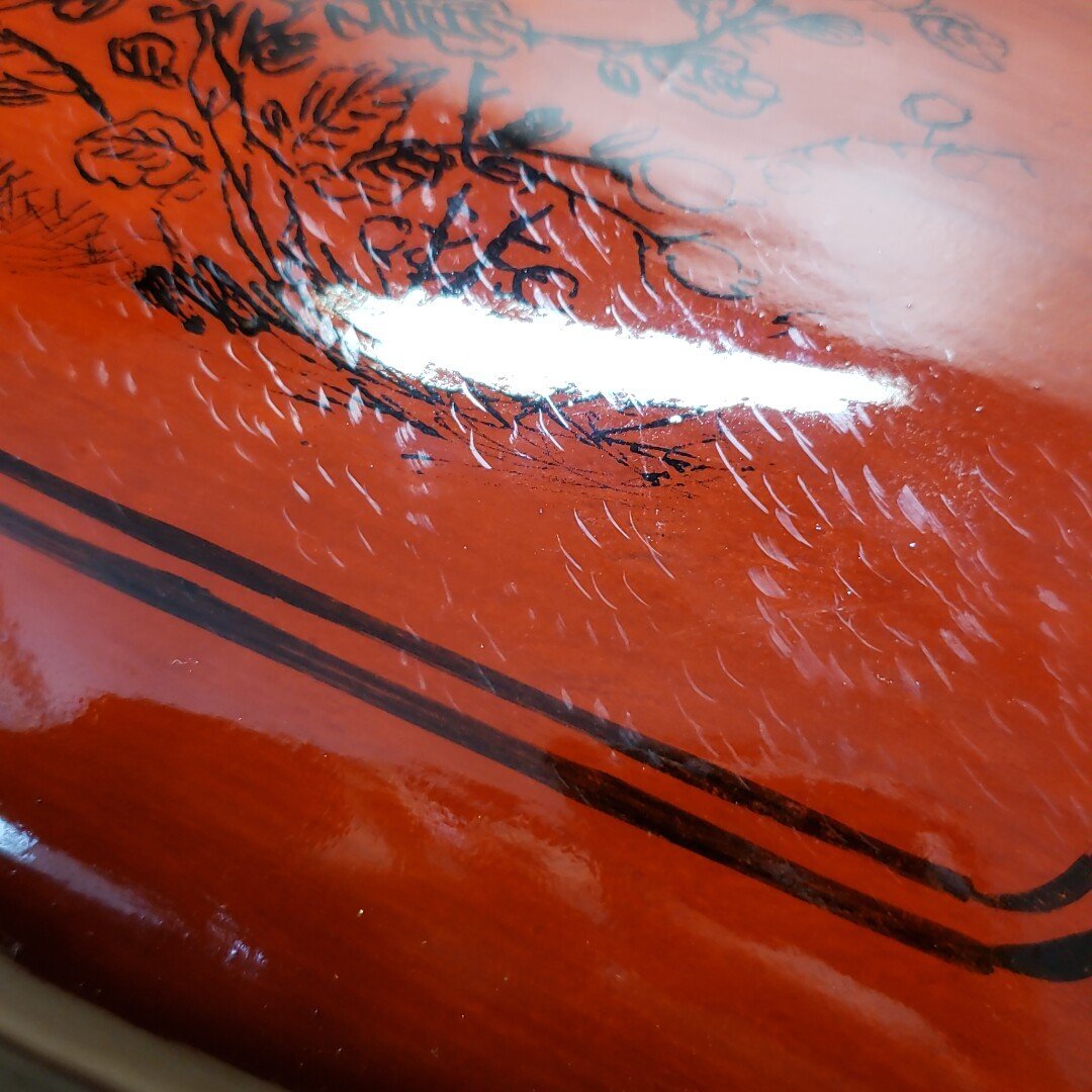 経年による汚れ、キズ、スレ、割れがあります。小さな穴が開いています。