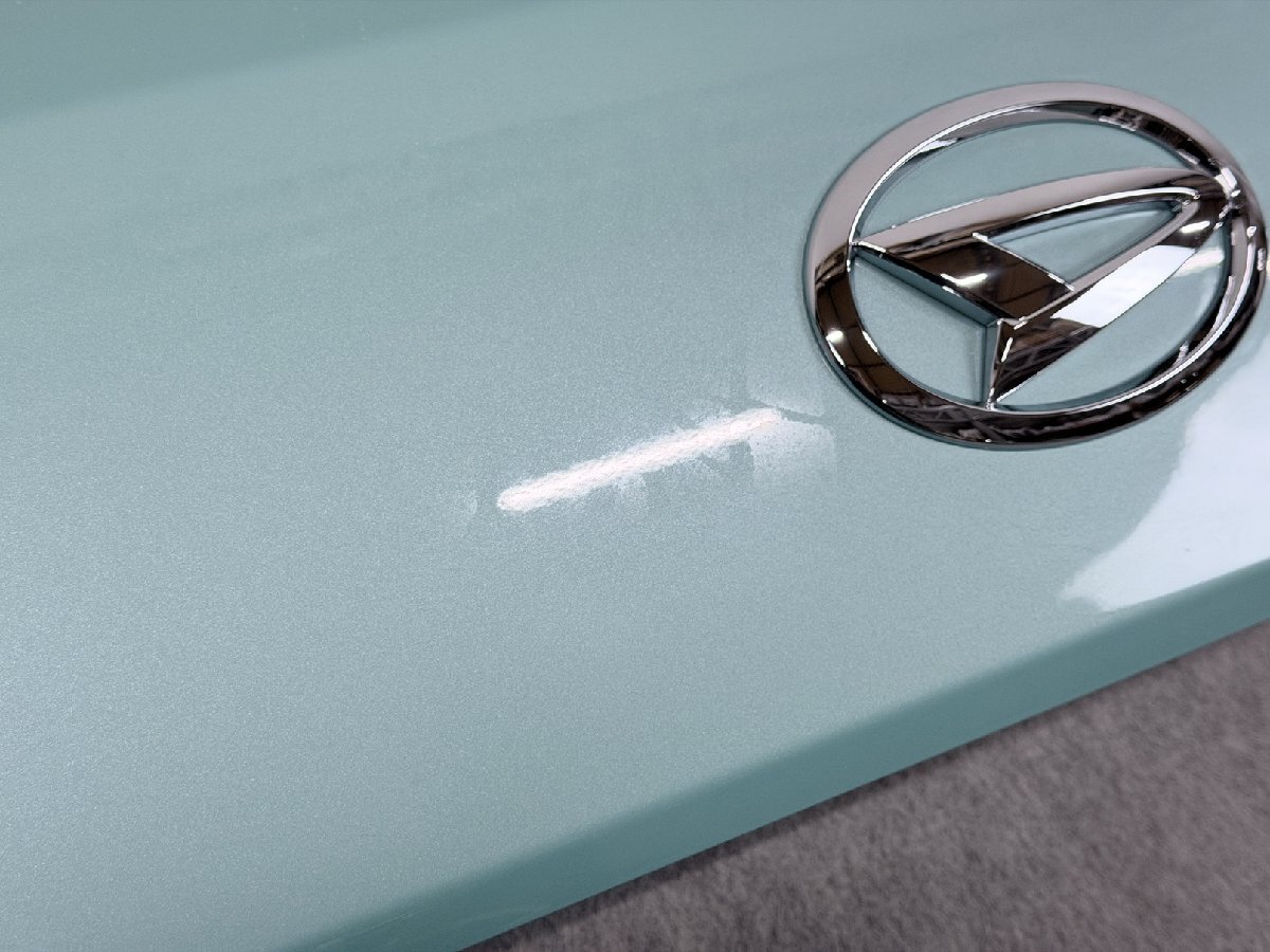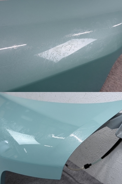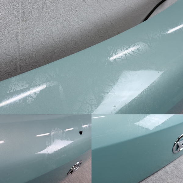 養生フィルムが劣化して張り付いた跡があります。 取付部に破損はありません。 〇車両情報 ・車種 ハイゼットカーゴ クルーズターボ“SAIII” ・型式 S331V ・車体番号 0228658 ・エンジン型式 KF-DET ・年式 2018年(平成30年) ・ボディカラーNo. G59 ファインミントメタリック ・トリムカラーNo. FD20 ・走行距離 34,550km | ||||