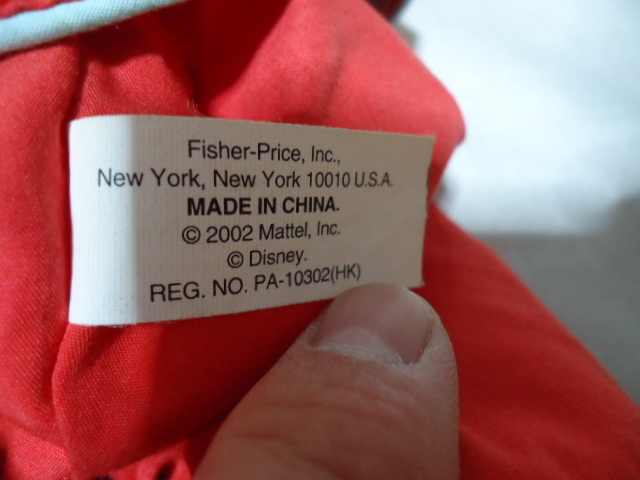 米国にて、個人の方より、購入しました。当初、喋ったようですが、現状喋りません。2002年製。タグ付き。フィッシャープライス・マテル社製。ぬいぐるみ製。両目のみ、刺繍です。サイズは、縦約41センチです。USED物なので、少々薄汚れあります。USED物なので、ご理解のある方・24時間以内に、お手続き入力後、期限内にかんたん決済、出来る方のみ、ご入札をお願い致します。この商品は、1点物です。 2512