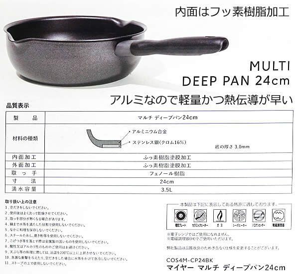 | 商品名 | Meyer マイヤー 24cm フライパン ディープパン 軽量 ガス対応 IH対応 3.5L フッ素樹脂加工 アルミニウム合金 |