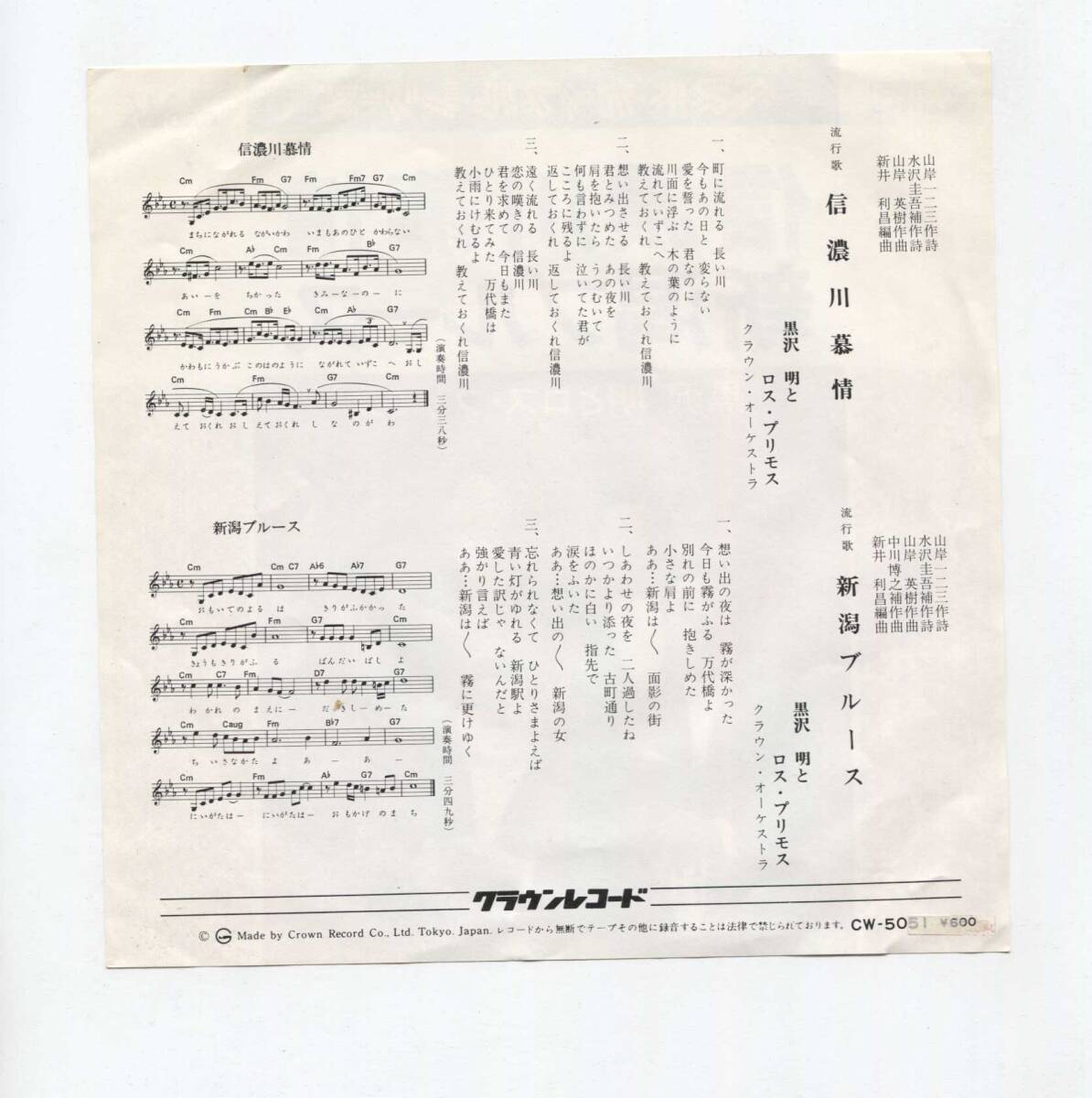 【EP レコード シングル 同梱歓迎】 黒沢明 と ロス・プリモス ■ 信濃川慕情 ■ 新潟ブルース ■ ムード歌謡