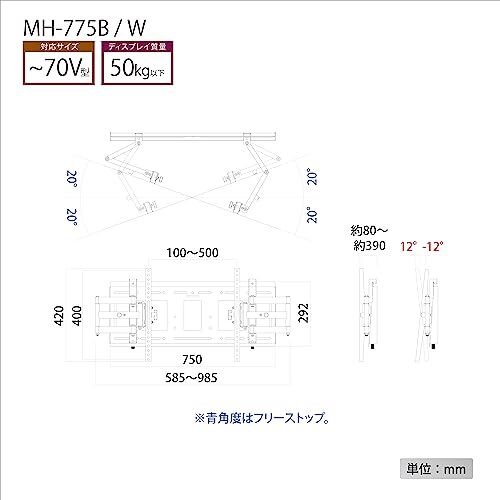 | 商品名 | ハヤミ工産 テレビ壁掛金具 70V型まで対応 VESA規格対応 上下左右角度調節可能 ブラック MH-775B | ||||||