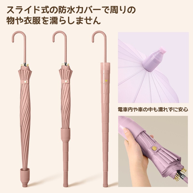 持ち歩きにも便利な撥水カバー付き。濡れた傘もスマートに携帯可能。