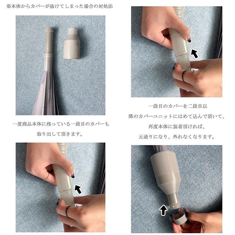 ※傘の内部から水滴が垂れてくる場合、先端キャップ内に水が溜まっている可能性がございます。一度先端キャップを外して排水していただくことで、解消されます。