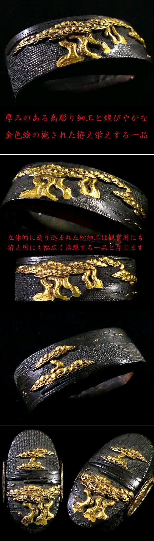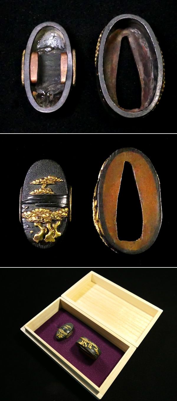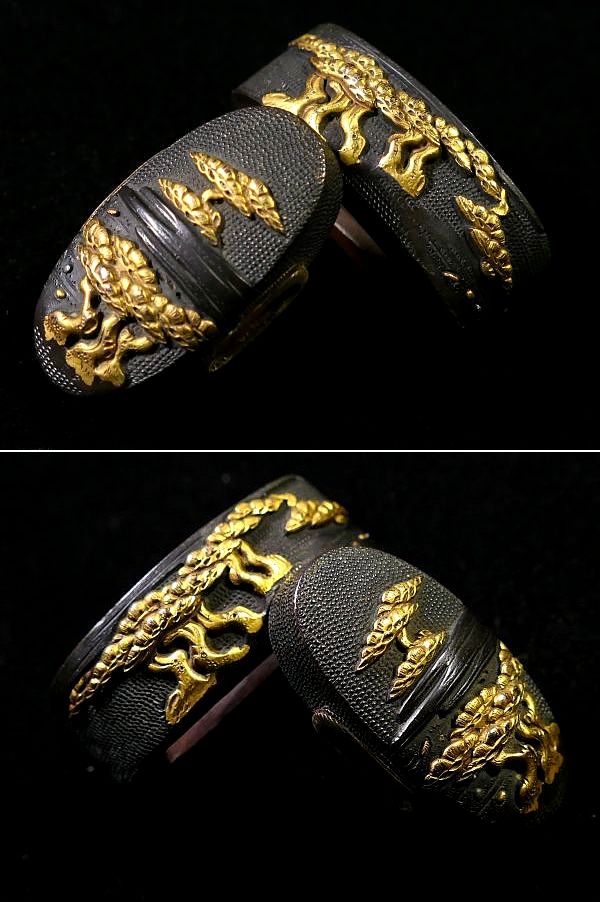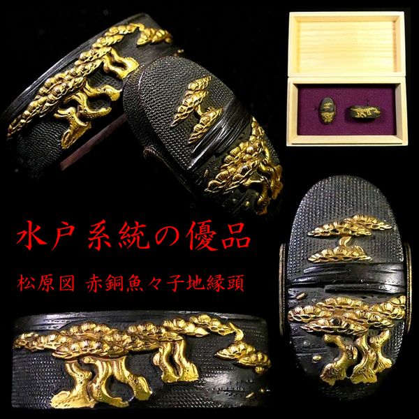 | 商品説明 | 黒々とした赤銅魚々子地と それに栄える煌びやかな金色絵に彩られた 高彫細工による松原図が施された 雰囲気良き一品です。 作行から見て 水戸系統の優品と推測しております。 詳しくは画像にてご確認下さい。 お好きな方この機会に是非手に入れて下さい。 【上質な赤銅魚々子地】 【煌びやかな金色絵】 【雰囲気良き一品】 寸法: (縁) 約 3.80cm × 約 2.31cm × 約 1.23cm (厚み) (頭) 約 3.38cm × 約 1.74cm × 約 0.91cm (厚み) 時代: 江戸時代 材質: 赤銅魚々子地 桐箱付 銘 : 無銘 状態:特に気になる傷みはなく良好。画像にてご判断下さい。 :許容範囲内の時代傷みはご理解下さい。 |