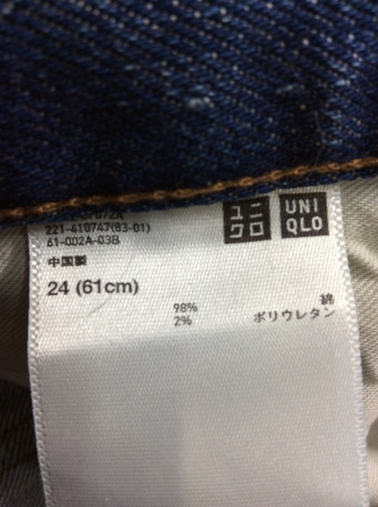 | 管理番号:40^118190 ユニクロ 青デニムパンツ 表示サイズ:24(61cm) 実寸(参考)