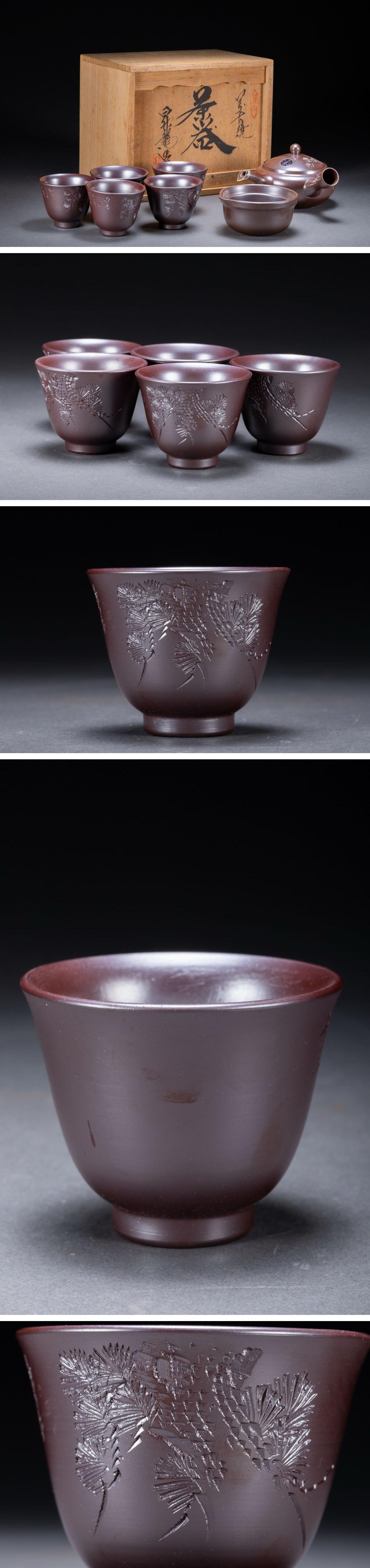 【雲錦】萬古焼 昇龍窯 弘仙造 茶器揃 茶碗 茶道具 直入識箱 共布 真作保証 美術品 7L10-128S05