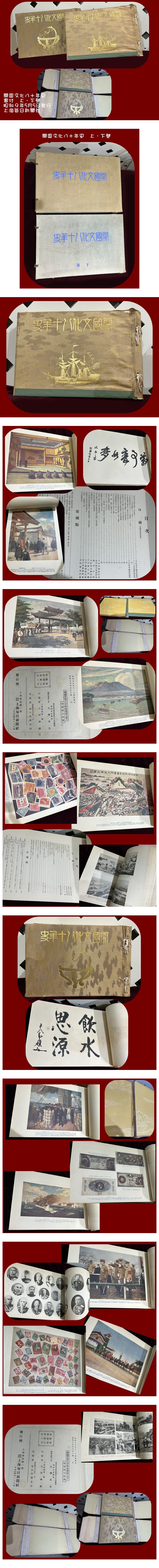 ★ 開国文化八十年史 / 奥付上下巻揃い / 昭和九年五月五日発行・上海毎日新聞社!レアな大判古書です!