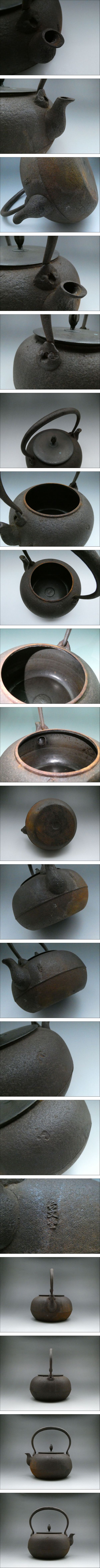 | ★商品★ ・鉄瓶【虫喰摘銅蓋鉄瓶】 ★製造元★ ・長文堂 ★寸法★ ・高さ (約)22.5cm ※提手を含む ・胴径 (約)18.5cm ※注ぎ口を含まず ・口径 (約)10cm ★重量★ ・(約)1715g ★材質★ ・鉄製 ★状態★ ・経年による傷、汚れ、変色、錆などが見られます。 ・1時間ほど水を溜めて放置しましたが、水漏れ箇所はございません。 ※備考※ 商品状態に関しては、あくまでも当方の見立てとなります。 程度には個人差がございますので、商品画像を良くご覧になられた上でのご入札お待ちしております。 |