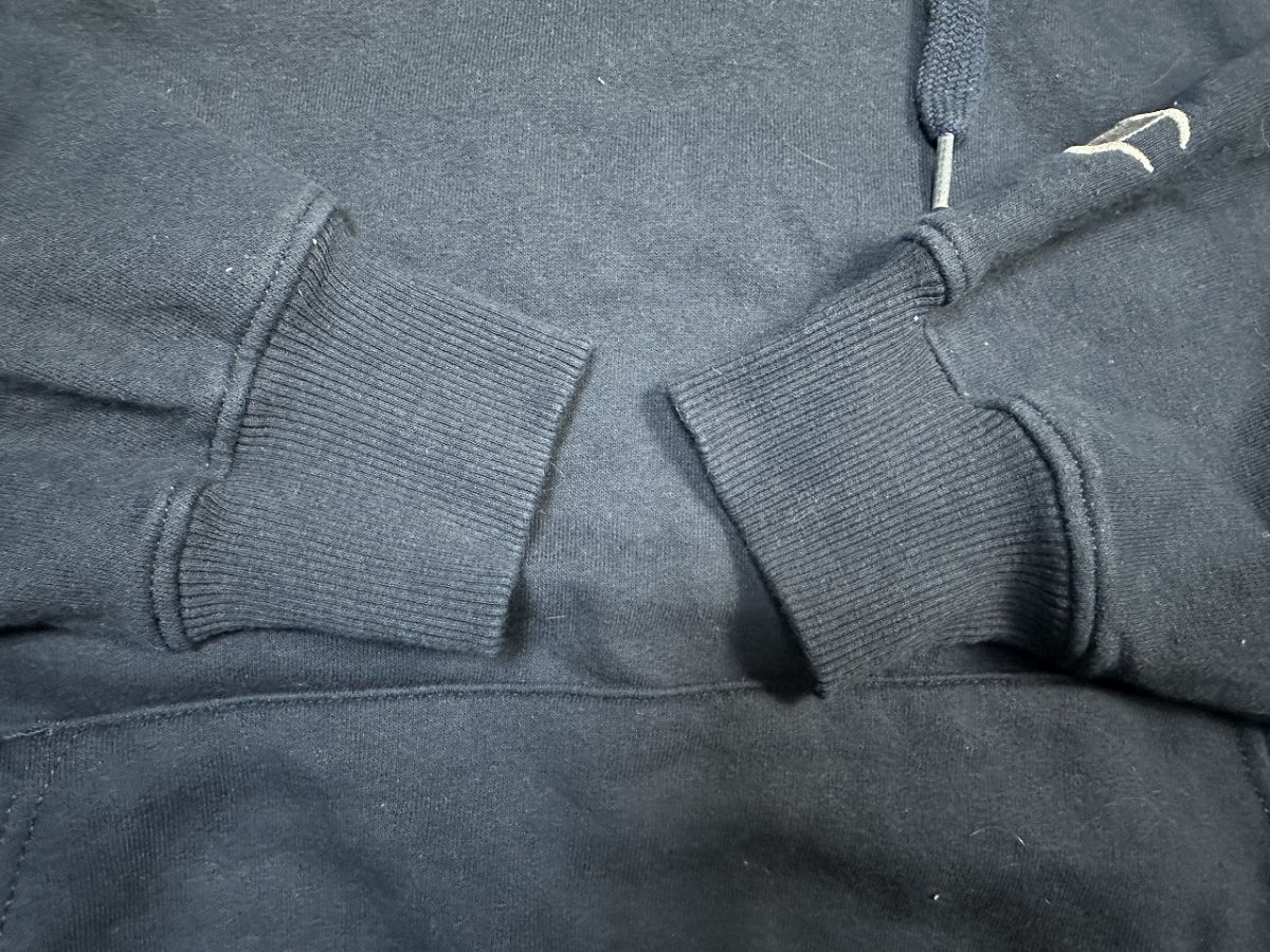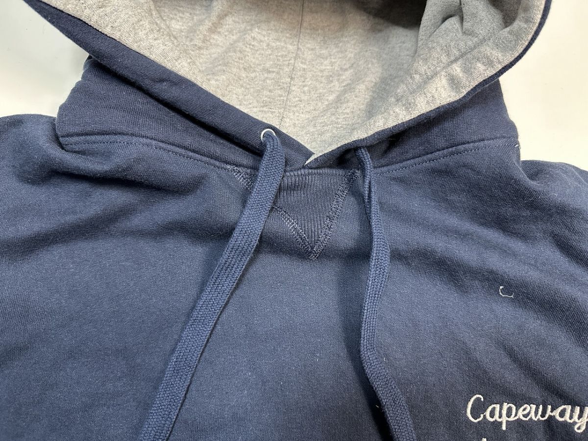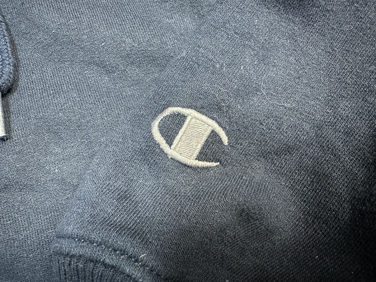 ●US USED ビッグサイズ US古着 Champion チャンピオン スウェット フード パーカ プリント ロゴ刺繍 肉厚 ネイビー紺【XL】裏起毛