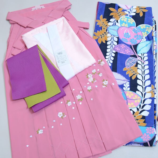 | 項目 | 卒業式二尺袖着物袴フルセット ・二尺袖着物 ・二尺袖長襦袢(半襟付き) ・袴 ・袴下帯(浴衣帯にも使用できます。) |