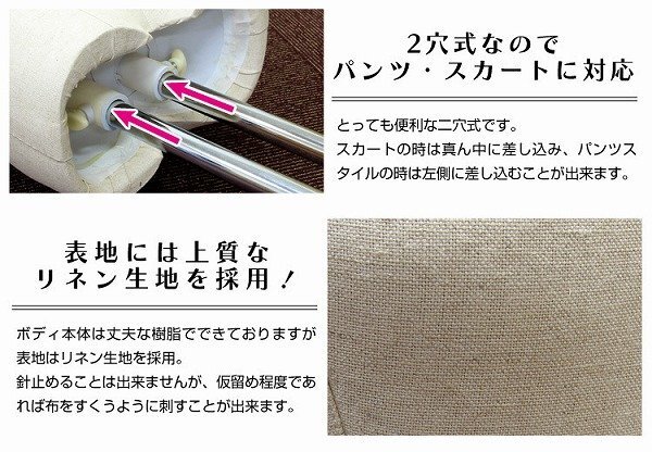 ショップのディスプレイやお部屋のインテリア、オークションや フリマアプリでの洋服モデルとしても大活躍! 組立も簡単! ボディと支柱を取り付けるだけなので最短3分ほどで完成します! 2穴式なのでパンツ・スカートどちらでも対応! また、トルソーの内部はFRP素材を使用しているのでとっても丈夫かつ高品質! 外張りの布は上質リネン生地なのでとても柔らかく上品な肌触りです。 針止めは出来ませんが、仮留程度であれば布をすくうように刺すことが出来ます。 【商品仕様】 サイズ(約):肩38 B86 W64 H84 素材:FRP素材、リネン、スチール ※輸入品となりますので、えくぼ傷、擦れ傷や倉庫保管時に生じた小さな汚れ がある場合がございます。 ※脚の部分は天然木を使用しており、表面にニスが塗られておりますが多少の傷が ございます。 【もちろん新品未使用品です】 |