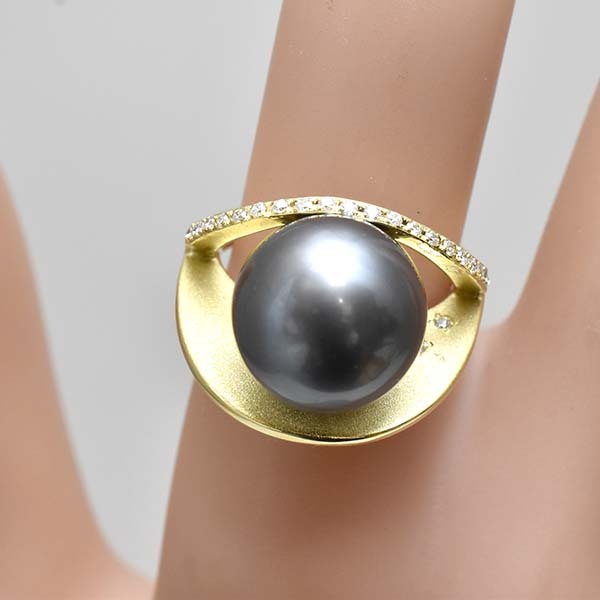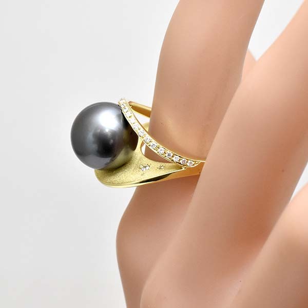 ブラックパールをメインにした18金製のデザインリング。| 商品詳細 | |||||||||||||||||||||||||||||||||||||