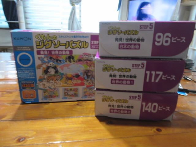 071105 断捨離 処分「公文 ジグソーパズル 動物シリーズ96P/117P/140P 3種SET 欠ピース無」保管品