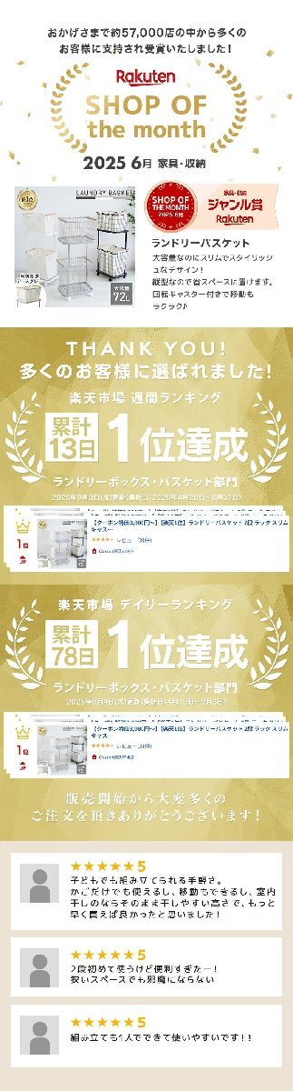 大容量なのにスリムでスタイリッシュなデザイン! 仕分けが便利なランドリーバスケット2段 洗濯物を2つのバスケットに分別でき、洗濯時の手間解消に♪ カバー付きで中が見えない!プライバシーを守ります。 スリムな縦型なので省スペースに置けます。 回転キャスター付きで移動もラクラク♪ バスケットは取り外して持ち運びOK。 スタイルに合わせて自由に使えます♪ カバーはテープで取り外し可能! ワイヤーバスケットは通気性抜群! ニオイやカビの発生を抑えられて衛生的です! かごはひとまとめにスタッキング可能! 使わないときはまとめて収納できます。 さびにくいスチールフレームを採用。 頑丈な作りで安心です。 スタイリッシュなデザインでインテリアにも馴染む♪ 家族みんなの洗濯物も入る大容量サイズです。 【商 品 詳 細】 カラー: アースグレー 【商品仕様】 サイズ(全体):約幅32x奥行40x高さ95cm サイズ(かご) 上段:約幅29.5x奥行38x高さ26.5cm 下段:約幅29.5x奥行40x高さ38cm 重量:約4.5kg 耐荷重上段:10kg 、下段:15kg 容量:約72L(上段30L、下段42L) 素材:スチール ランドリーバスケット キャスター付き 2段 おしゃれ 北欧 大容量 洗濯かご 2つ合わせて72Lの大容量!省スペース&シンプルですっきり!カバー付きで中が見えない 楽天1位 ランドリーバスケット 2段 ラック スリム 72L 大容量 布 カバー 隠せる キャスター付き オシャレ ランドリー収納 ランドリーラック ランドリーワゴン ワイヤーバスケット 洗濯物入れ かご 洗濯かご 脱衣かご 収納 一人暮らし ランドリーバスケット 2段 3段 1段 大容量 ワイヤーバスケット ランドリーラック 洗濯物入れ かご 洗濯かご 洗濯物 脱衣かご ランドリー収納 ランドリーボックス 洋服 衣服 収納 おもちゃ収納 雑貨入れ おしゃれ シンプル 北欧 西海岸 人気 おすすめ WEIMALL |