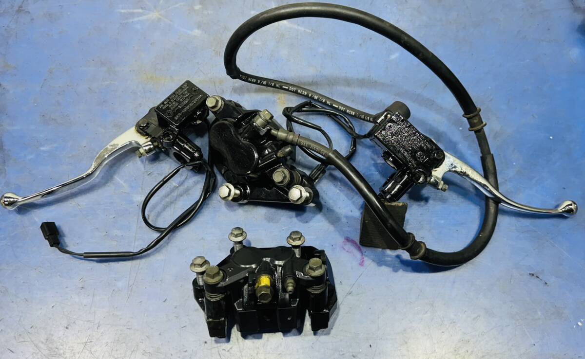実動外しです。 ブレーキ関係ですので、 ご使用には安全のためオーバーホールをお勧めします。 パーツとして又は部品取りにご使用下さい。 詳しい詳細は布テープの記載欄又は画像で判断下さい。 年式、型式、適合等に関しては中古現状車の部品ですので 詳細不明となり変更点などあるかもしれません。 正確には画像を参考にご判断ください。 中古品ですので傷、錆、汚等有り部分的な曲など 少なからずあるかもしれませんが商品の状態は画像参照にお願いします。 レストアベース、カスタムベース、部品取用にご検討下さい。 付属品は画像に写っている限りとなります。 画像で光って写っている場合があります、 それはアルミや鉄の腐食を少しでも防止する為に 保護剤を吹きかけている場合があります、 在庫保管時の腐食防止の為ですのでご理解下さい。 詳細のリペイン トとはある程度の錆を落としてその上から 簡易なリペイント処理をしている事を示します。 他にも掘り出し物など出品しておりますので、 お探しの方はこの機会にご検討よろしくお願いします。 ■自己紹介欄に重要事項(休日・休業等など)が御座いますので 随時ご確認下さい。■ |