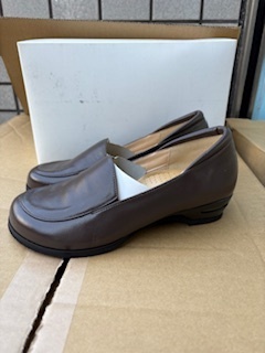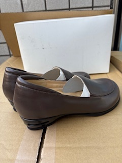 ★新品未使用 正規品 ブランド名画像で確認して下さい 画像サンプルです★ 正規品 紙タグ 箱無しです 日本製・足の健康を重視した、使い勝手のいいシンプルなローファー Mode Tokimi レディース ラム革コンフォートシューズ 履き心地とデザイン性を兼ね備える、神戸で作られたMode Tokimiのシューズ。 なめらかな質感とやわらかく足当たりのよいラム革で作ったローファー。 ファッションに合わせやすく使い勝手のいいシンプルなデザインです。 履き口はひっそりゴム仕様。甲の両わきに隠しゴムを入れているので簡単に脱ぎ履きできます。 中敷きには、全面クッションと土踏まずを支えるアーチクッション、 つま先部分に低反発ウレタンと、かかと部分にブレ防止の半カップインソール、 足が疲れにくい中足骨パッドが入っていて、しっかり足をサポートします。 さらに、衝撃を吸収して足の疲れを軽減してくれるエアヒールを採用。 約3.5cmの負担を掛けないヒール高で、長時間でも無理なく履いていられます。 甲高・幅広の足の方でも履きやすい、ワイズ4E/5E展開。 つま先は、足先の形に近くソフトでクラシカルな印象を与えるオブリーク・トゥ。 足の内側を頂点に斜めラインを描く形状で、つま先を締めつけにくいやさしいデザインです。 足の健康を重視しつつ、おしゃれにも手を抜かないMode Tokimiのローファー。 足にぴったり合う靴を探しやすい、豊富なサイズ展開です。 ★製品仕様 素材 アッパー:ラム革 / 靴底:合成底・ポリウレタン(ヒール部) 中敷 全面クッション・アーチクッション・中足骨パッド 中敷に抗菌剤使用:銀系 ★ サイズ cm ★汚れ少々有りその他見落としが有るかもしれませんので ●返品は 返品不可ですので。 ● ノークレームノーリタン でお願いします | |||